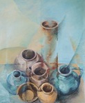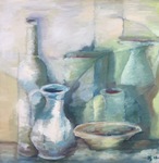 Het uitgangspunt van een stilleven is altijd een realistisch plaatje waarbij haar voorliefde voor organische vormen een rol speelt. Vervolgens speelt ze met het licht en de schaduwen, laat de juiste verhoudingen los, zoekt mooie combinaties en trek lijnen door. Zo wordt een stilleven langzaam maar zeker abstract.